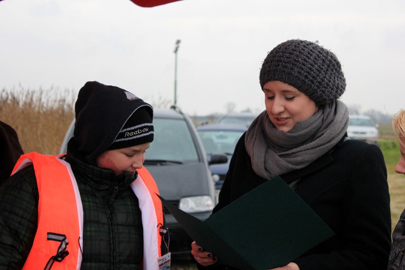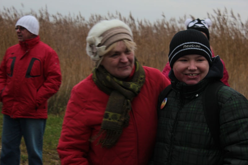Po kilku minutach oczekiwania ujrzeliśmy wyłaniającego się zza mgły Juliana z mamą i bratem. Choć było przeraźliwie zimno i coraz większe krople deszczu zaczynały padać coraz częściej, nasz Marzyciel bez wahania zabrał ze sobą cały sprzęt do wędkowania. W końcu jechał na rodzinne łowienie rybek przy ognisku, bo taki był oficjalny (czyt. przeznaczony tylko dla Juliana) powód wyprawy do Głęźnowa.