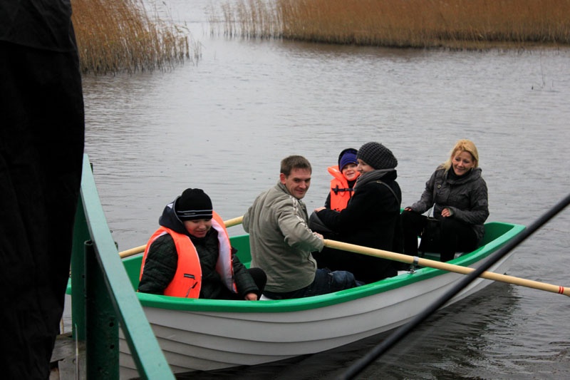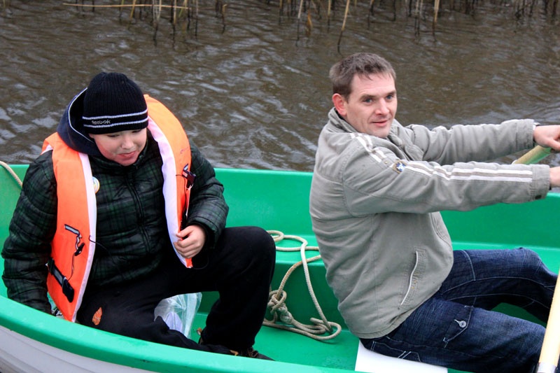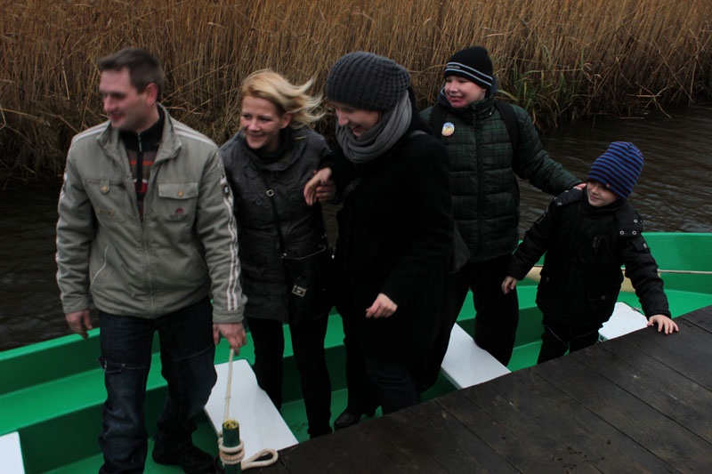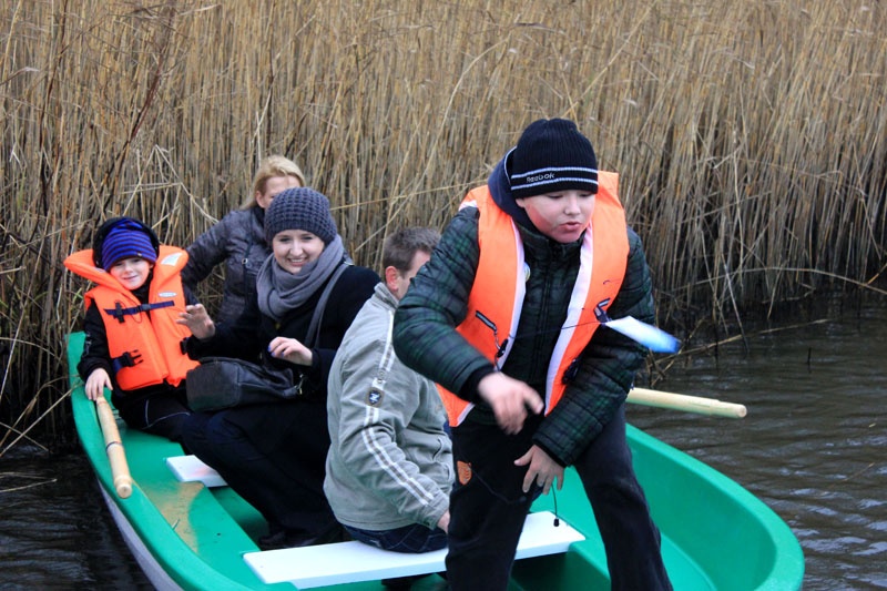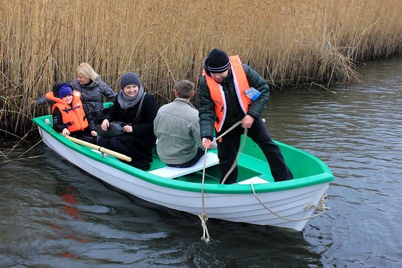 Po pierwszych oględzinach trzeba było oficjalnie sprawdzić, czy łódka jest faktycznie taka, o jakiej chłopiec marzył i czy pomieści 5-6 osób. Na podkład wsiadł, więc nasz Marzyciel z rodzicami i bratem oraz wolontariuszka, która była święcie przekonana, że po zrobieniu wspólnego zdjęcia, będzie mogła wrócić na ląd. Ale nic z tego! Przecież na pierwszym spotkaniu Julek obiecał rejs łódką, a on – jak podkreślił – słowa dotrzymuje! I wypłynęliśmy w dziewiczy rejs po pobliskich szuwarach. Zgodnie z obietnicą łódka okazała się niezatapialna i nawet niestraszne były jej trzciny, w które uparcie wpływała.