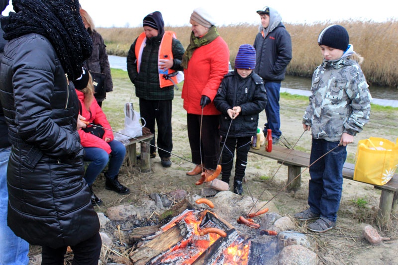 Gdy rejs dobiegł końca, zasiedliśmy wokół ogniska, by zagrzać się, upiec kiełbaski i poznać historie wielkiej tajemnicy dotyczącej łódki. O niespodziance wiedzieli oczywiście wszyscy, oprócz Juliana. Chłopiec przyznał, że niczego się nie spodziewał, ale jest szczęśliwy. Dodał, że łódź jest taka, o jakiej marzył i nawet jej kolor mu się podoba! Obiecał, że nazajutrz z samego rana pojedzie do urzędu zarejestrować jednostkę, by móc oficjalnie zostać jej kapitanem.