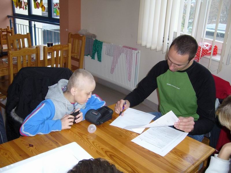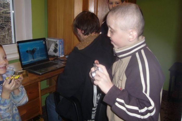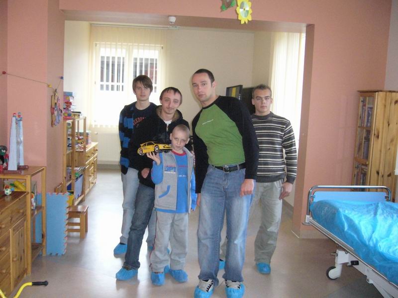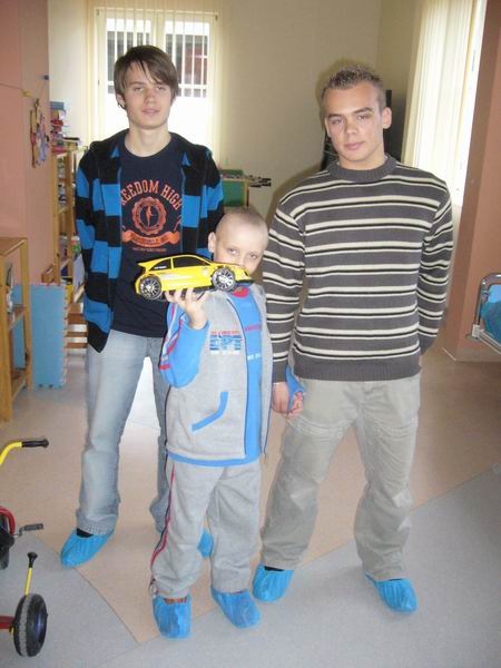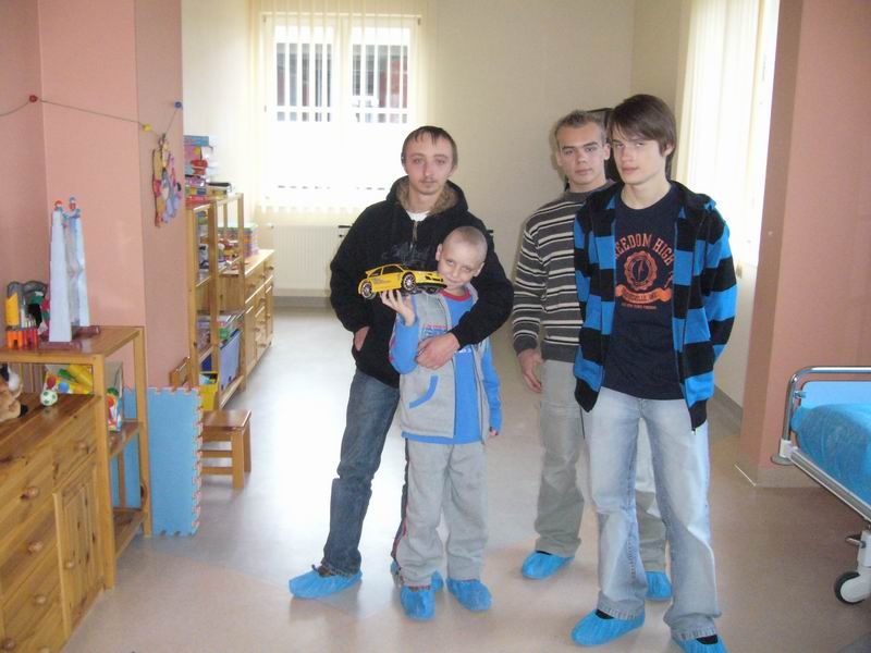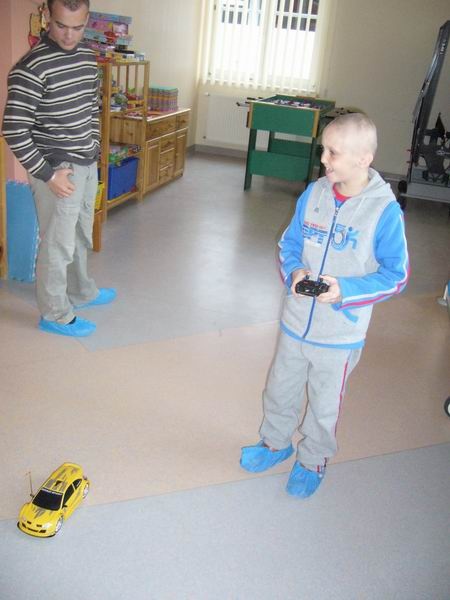 W niedzielę, 4 listopada odwiedziliśmy naszego marzyciela - 11-letniego Wojtusia w szpitalu na ul. Unii lubelskiej. Planując odwiedziny kupiliśmy mu zdalnie sterowany samochód. Wojtuś był bardzo szczęśliwy widząc zabawkę, a my cieszyliśmy się z trafionego prezentu. Widać, że chłopak interesuje się samochodami, gdyż wywijał po korytarzu szpitala jak zawodowiec. Następnie bawiliśmy się w kręgle. Piotrek i Artur nie mieli z nim najmniejszych szans. Chłopiec jest pełen życia, interesuje się losem innych dzieci. Wojtuś jest bardzo ciekawski :), gdyż podczas wypełniania ankiety cały czas był nią zainteresowany. W trakcie rozmowy dowiedzieliśmy się o marzeniu chłopczyka. Wojtek marzy o laptopie z internetem. Ten sprzęt naprawdę mu się przyda, gdyż leżąc cały tydzień w szpitalnym pokoju trudno jest nie tęsknić do przyjaciół i rodziny. Wojtusiu!! Dołożymy wszelkich starań, aby w jak najszybszym czasie podarować Ci wspaniałego laptopa.