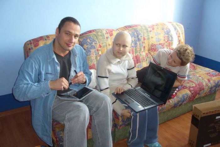 W sobotę 6 września, około godziny 15:00 ja (Bartek) wraz z Grzegorzem udaliśmy się do szpitala przy ul. Unii Lubelskiej, aby spotkać się z Weroniką, która ma 14 lat. Na co dzień Weronika mieszka w Białogardzie wraz z rodzeństwem oraz rodzicami. Przybyliśmy do szpitala z małym opóźnieniem, które niestety nie było zależne od nas. W szpitalu wraz z Weroniką, która cierpi na ostrą białaczkę limfoblastyczną, była jej mama. Rozmowa, jak większość rozmów w takich sytuacjach, zaczęła się dość niemrawo, ale już po kilku minutach wszystko było w najlepszym porządku. Dowiedzieliśmy się, że Weronika jest wierną fanką Kubusia Puchatka, dlatego jako lodołamacz zakupiliśmy książkę o Kubusiu oraz maskotkę Tygryska. Prezent okazał się strzałem w dziesiątkę. Gdy Grzesiek udał się z mamą Weroniki wypełniać niezbędne "papiery" ja poprosiłem, aby nasza Marzycielka pokazała mi swoją kolekcję karteczek. Okazało się, że wszystkie karteczki są o Kubusiu Puchatku i jego bajkowych przyjaciołach! Mało tego - cały wielki segregator okazał się być jedynie niewielką częścią kolekcji Weroniki!!! Jest to niezwykle interesujące hobby, a zbiory karteczek, które posiada nasza Marzycielka są niesamowite. Mama Weroniki musiała wychodzić, ponieważ nie mogła spóźnić się na pociąg do Białogardu. Gdy zostaliśmy sami z Weroniką dowiedzieliśmy się sporo o jej osiągnięciach sportowych w dziedzinie zapasów! Wcześniej trochę opowiedziała nam mama dziewczynki. Nadszedł czas, aby spytać się jakie jest marzenie Weroniki. Weronika marzy o laptopie z internetem oraz wbudowaną kamerą internetową, aby mogła kontaktować się z rodziną, która nie zawsze może w komplecie przyjechać do szpitala oraz by zabić nudę i czas, który w szpitalu dłuży się okropnie. Postaramy się spełnić marzenie wesołej i bez przerwy uśmiechniętej Weroniki. Jak zawsze damy z siebie wszystko.