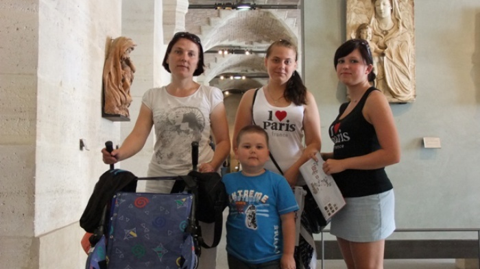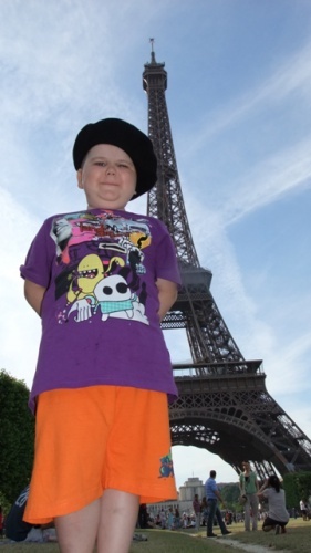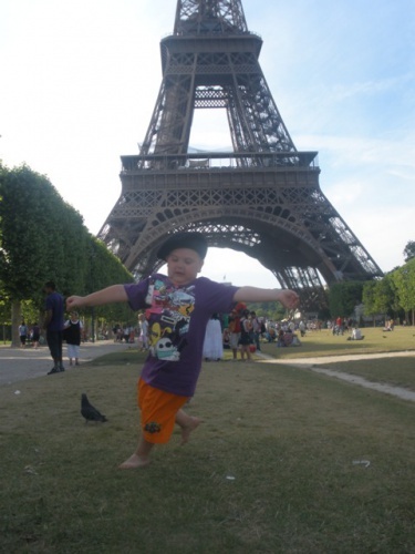 Komplikacje są nieodłącznym elementem podróży. Tak było też tym razem. A mianowicie nie mogliśmy się odnaleźć na tym wielkim lotnisku. Ja, Ania i Łukasz lataliśmy po całym obiekcie szukając odpowiedniej bramki. Przy okazji Łukasz miał okazję zwiedzić calutkie lotnisko;) Troszeczkę czasu minęło zanim odnaleźliśmy terminal C, już zaczęłam się martwić, że nie zdążymy na samolot. Ale na szczęście wszystko się udało. Odetchnęliśmy z ulgą gdy siedzieliśmy wygodnie w samolocie i szykowaliśmy się do startu. Lot był bardzo spokojny i przyjemny. Zjedliśmy śniadanko, Łukasz złożył model samolotu, który dostał na pokładzie i podziwialiśmy piękne widoki zza okna. Nim się obejrzeliśmy byliśmy już nad Paryżem i podchodziliśmy do lądowania. Niewiele czasu później, jechaliśmy już ulicami tego ogromnego miasta. Dotarliśmy do hotelu, chwilę poczekaliśmy na pokoje i nareszcie była chwilka na mały odpoczynek. Przebraliśmy się i ruszyliśmy zjeść obiad i przy okazji zwiedzić okolicę. Następnie, zmęczeni i niewyspani, ale za to szczęśliwi wyruszyliśmy do centrum Paryża. Pierwszym zabytkiem jaki ujrzeliśmy był Łuk Triumfalny, który oczarował nas swoją wielkością i potęgą. Od Łuku ruszyliśmy na zdobycie Pól Elizejskich. Ta długa ulica okazała się ciężka do przejścia z powodu okropnego upału. Ale udało nam się przejść całą, podziwiając wystawy markowych sklepów. Doszliśmy do dzielnicy „Invalides" i po raz pierwszy troszkę się zgubiliśmy;) Ale bardzo pomocni Panowie Policjanci wskazali nam drogę do kolejki RER, która zawiozła nas pod samą Wieżę Eiffel. Pod wieżą Łukasz znalazł swój wymarzony francuski beret. Widok metalowej budowli powalił nas na nogi. Była ogromna. Kolejka do wieży okazała się wcale nie mniejsza od sago zabytku. Na szczęście udało nam się jej uniknąć. Po wytłumaczeniu ochroniarzom, że jesteśmy z Fundacji, Ci wprowadzili nas vipowskim wejściem;) Wjazd windą był dość przerażający. Najpierw wjechaliśmy na 2 piętro, a następnie na 3. Widoki były po prostu porażające. Piękna okolica widziana z góry i zachwyt na twarzy Łukasza, to niezapomniane chwile. Potem chwilę odpoczęliśmy na Polach Marsowych i ruszyliśmy powrotem do hotelu. Dzień był bardzo intensywny i męczący, nic wiec dziwnego, że szybko poszliśmy spać.